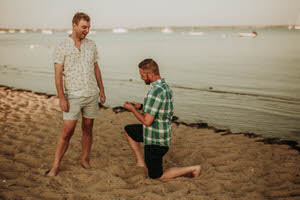 Later that year, while on vacation, Ben decided to propose to Brandon on the beach. Brandon was totally surprised and said yes!